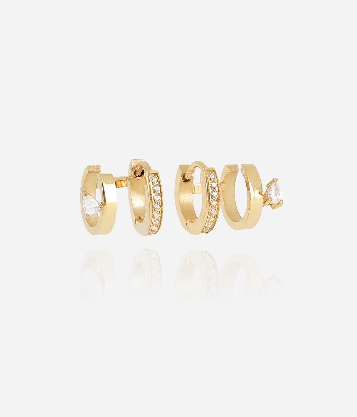 Boucles d'oreilles multi créoles en acier uni ou doré à l'or fin par ionisation composées de 2 anneaux alignés créant un effet d'accumulation.