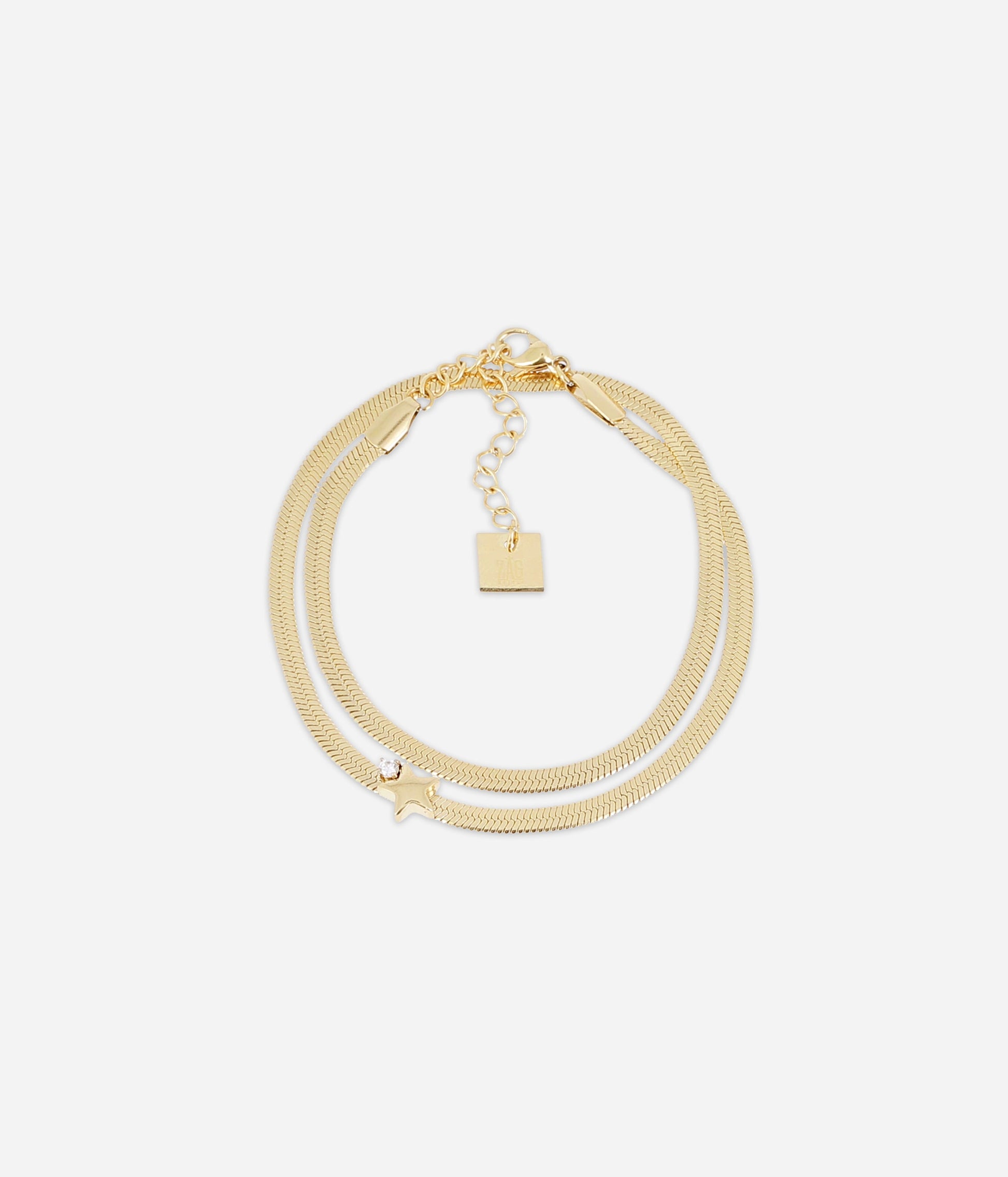 Bracelet double rangs en acier uni ou doré, serti d'une étoile sur laquelle et d'un zirconium.