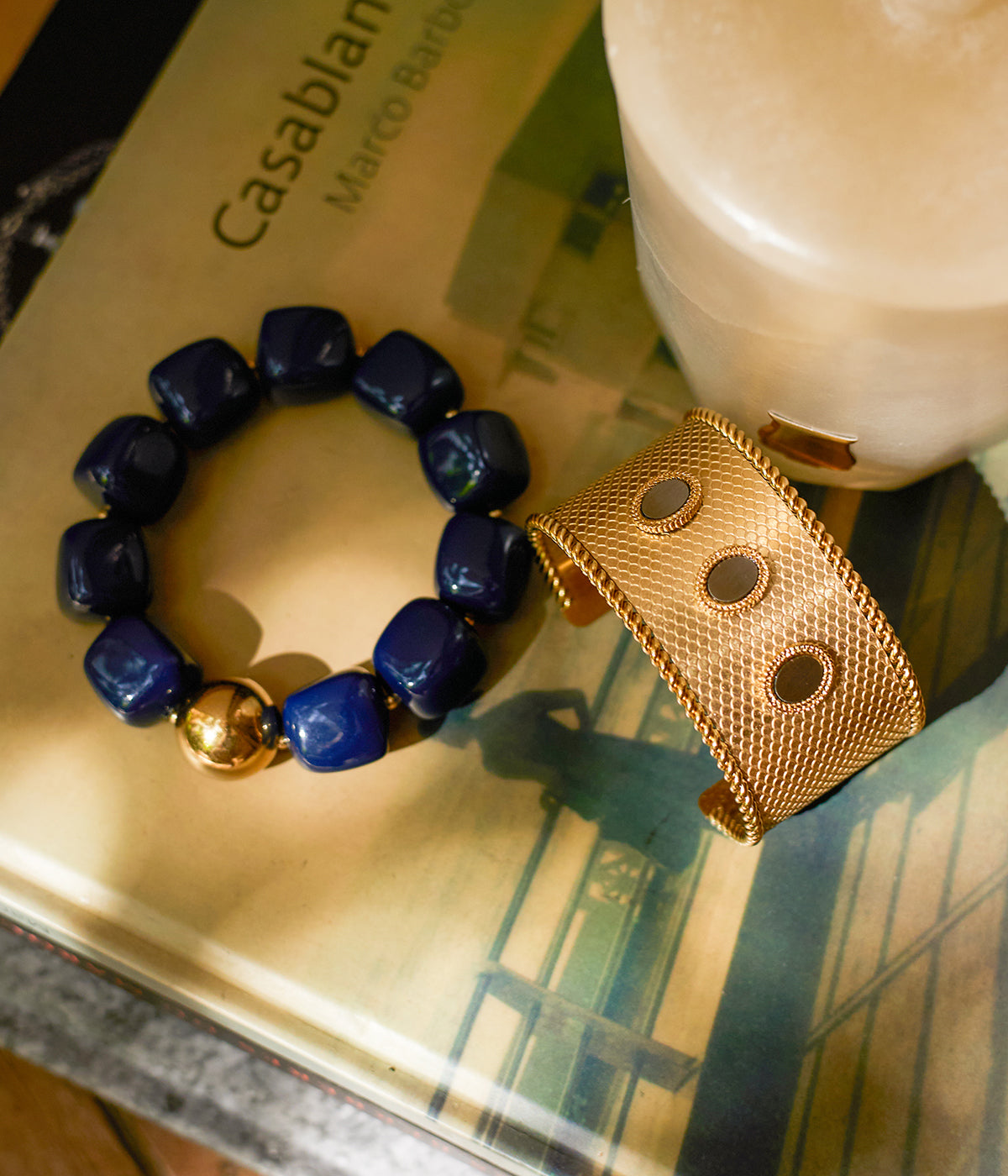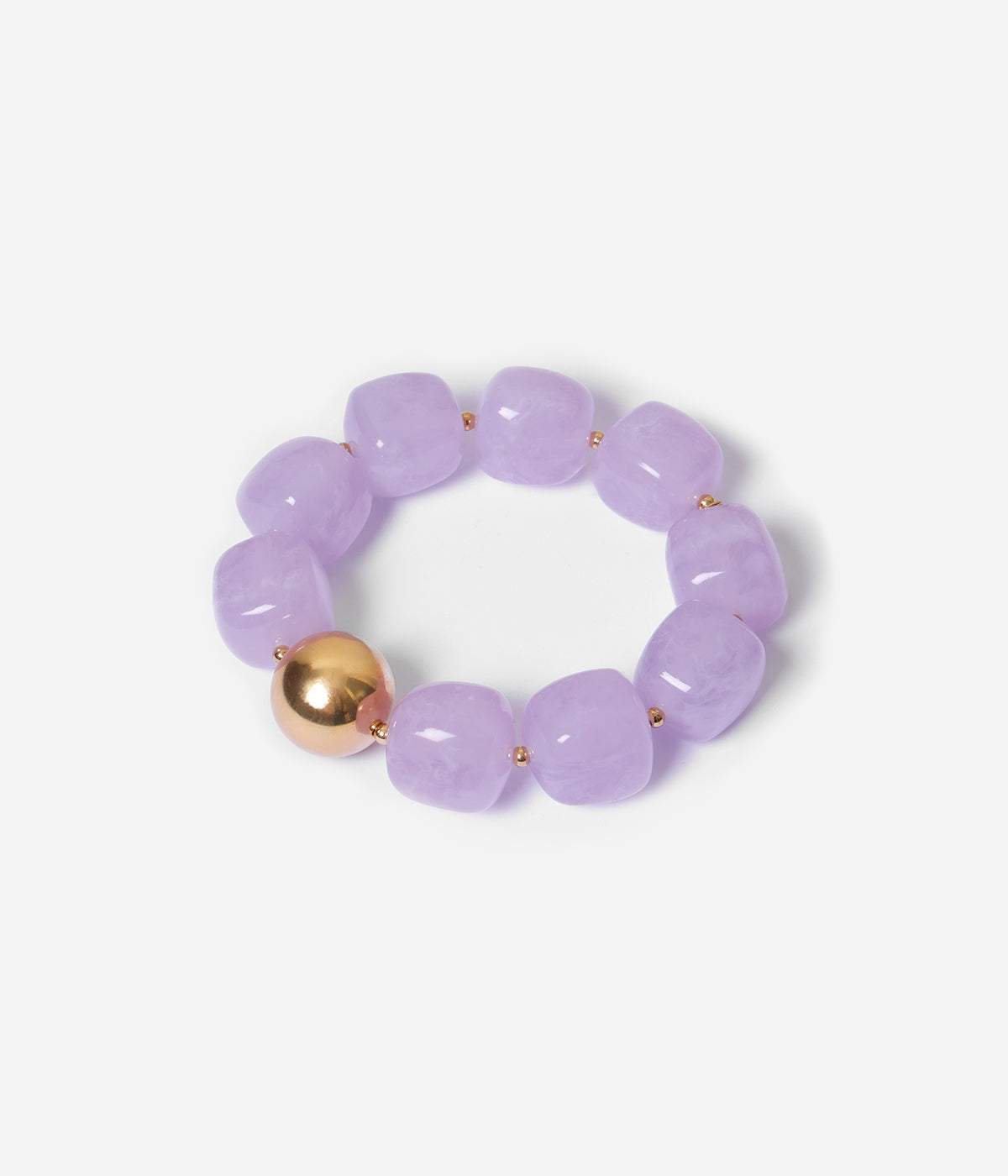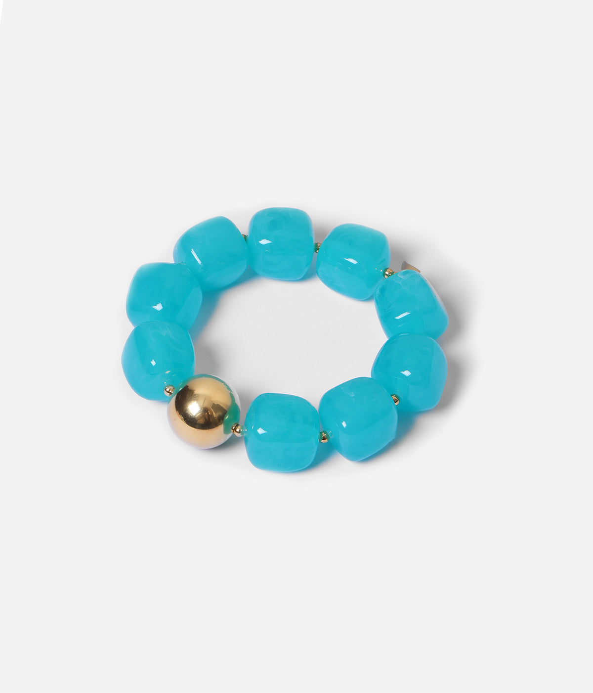 Bracelet en acier doré à l'or fin par ionisation parsemé de perles de résine de couleur. Il vous assurera un look bohème chic !
