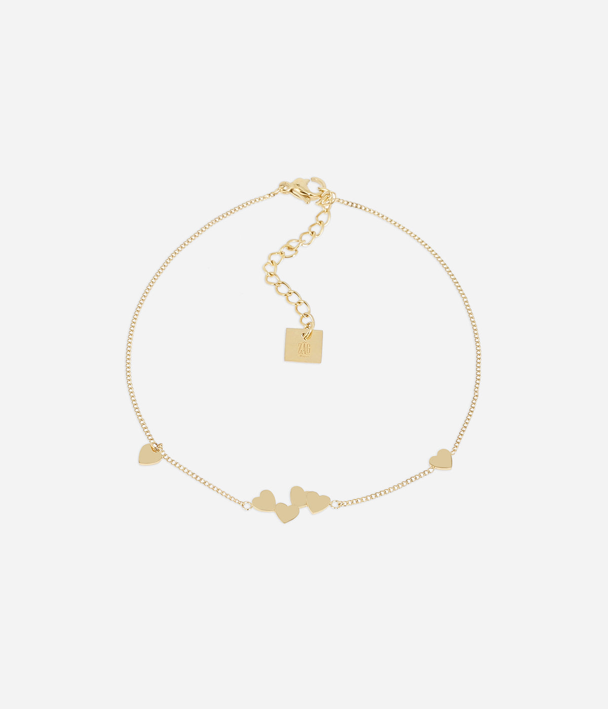 Chaîne de cheville en acier doré à l’or fin serti de plusieurs petits cœurs en acier.