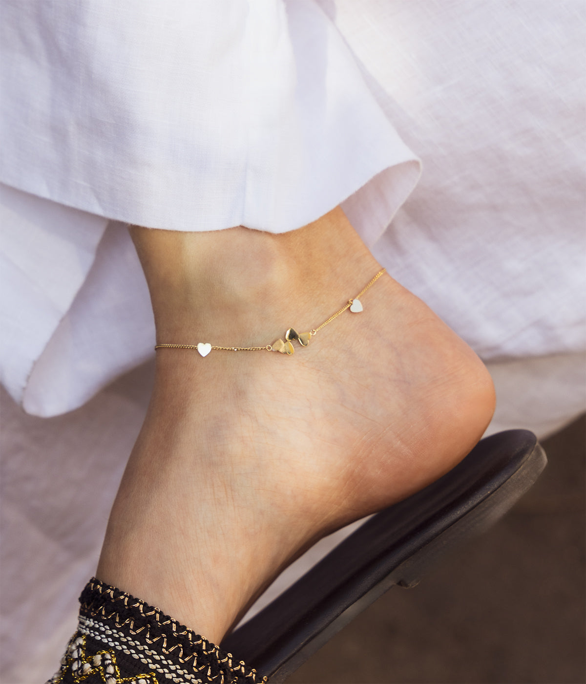 Cette chaine de cheville est idéale à porter seule ou en accumulation.