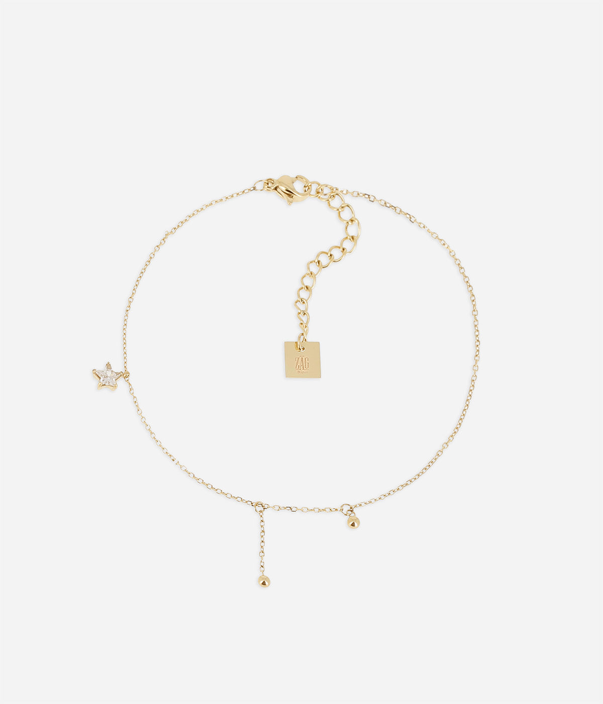 Chaîne de cheville en acier doré à l’or fin serti d'une petite étoile en zirconium.