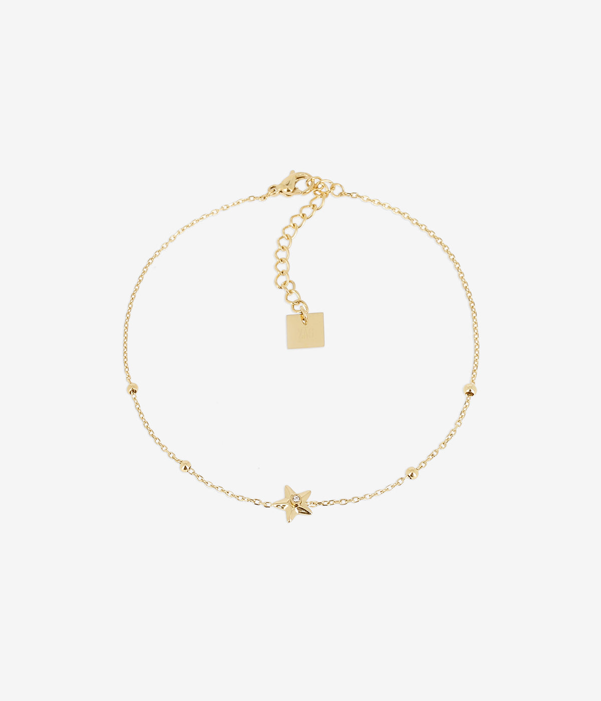 Chaîne de cheville en acier doré à l’or fin serti d'une étoile en acier sertie d'un zirconium.