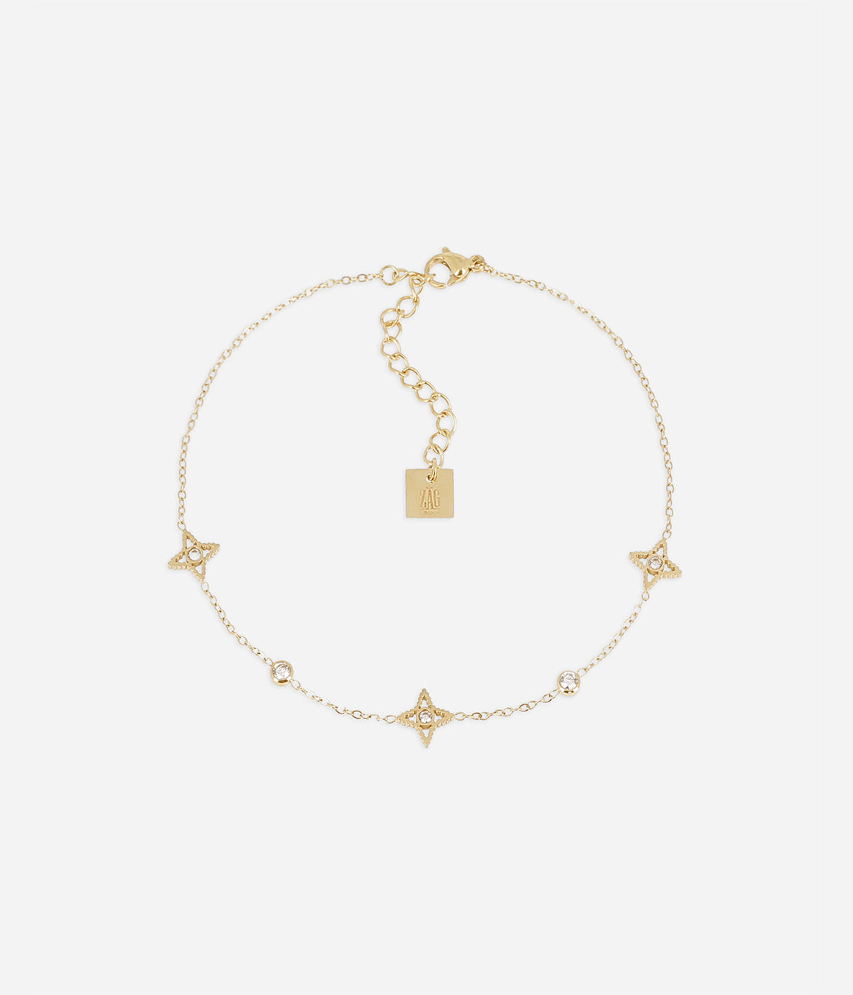 Chaîne de cheville en acier doré à l’or fin serti de plusieurs petits étoiles en zirconiums.