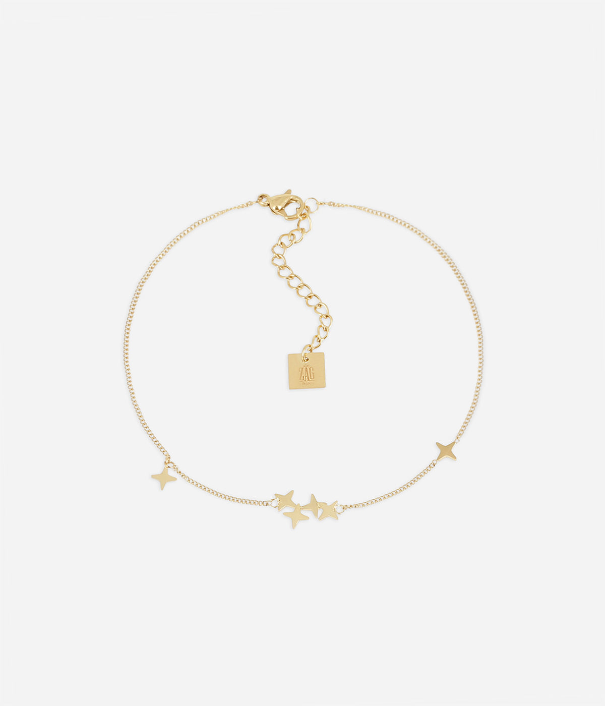 Chaîne de cheville en acier doré à l’or fin serti de plusieurs petites étoiles.