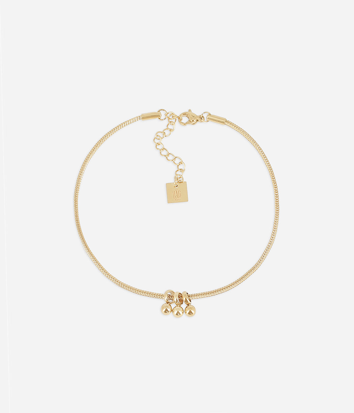 Chaîne de cheville en acier doré à l’or fin serti de petits boules en acier arrondies.
