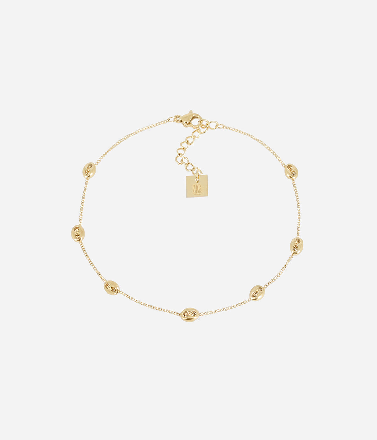 Chaîne de cheville en acier uni ou doré à l’or fin serti de plusieurs petits grain de café en acier.