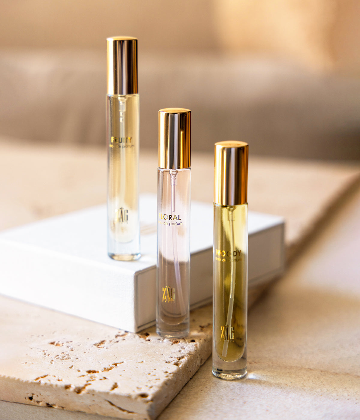 Telles des parures invisibles, les parfums ZAG ont été créés dans le même esprit que les collections de bijoux : un désir de qualité et de belles matières.