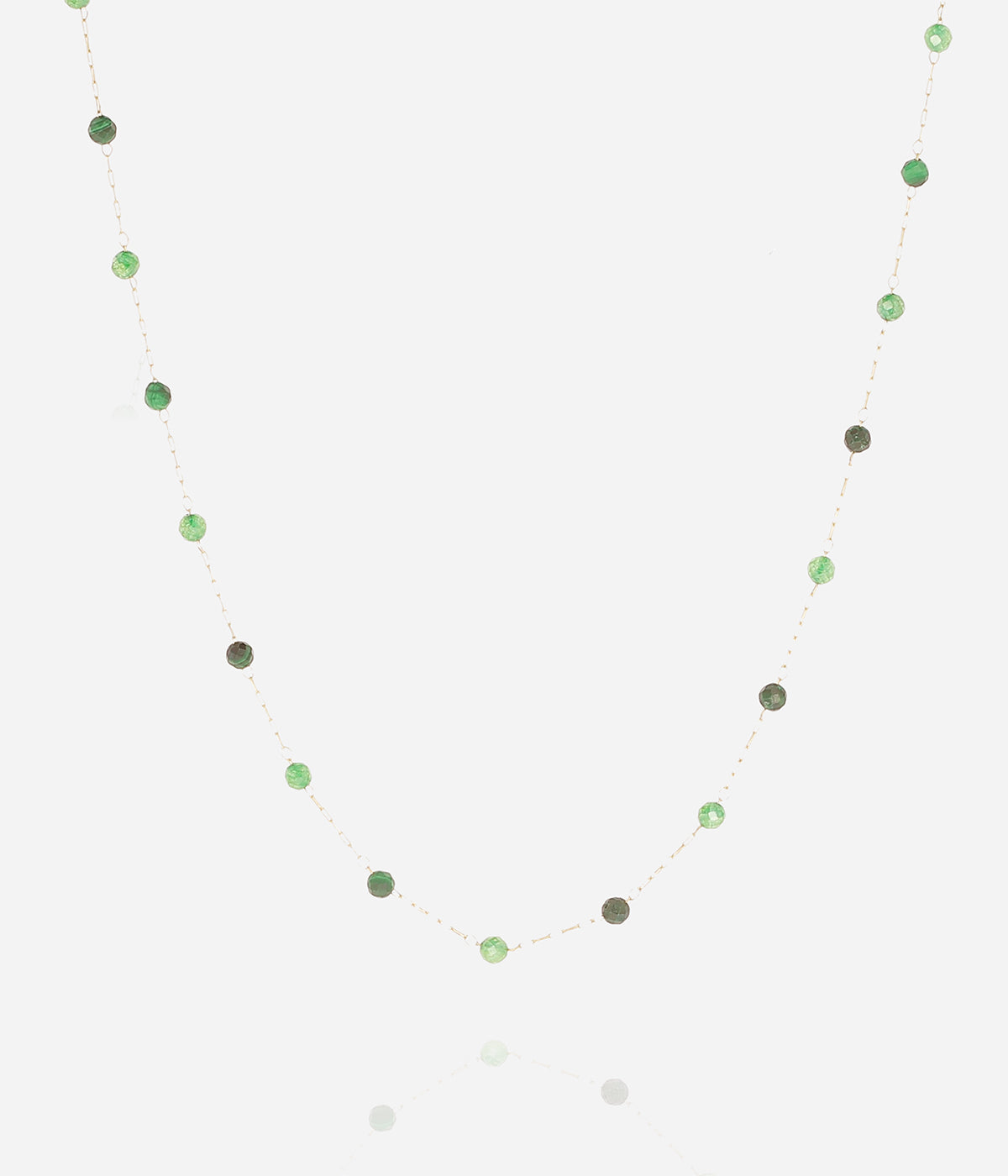 Collier en acier doré à l'or fin par ionisation composé de petites pierres naturelles colorées.