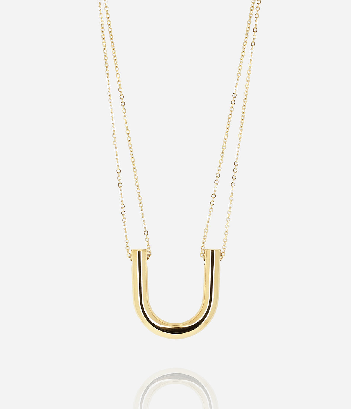 Collier multi-rangs en acier uni ou doré, serti d'un pendentif en forme de U.
