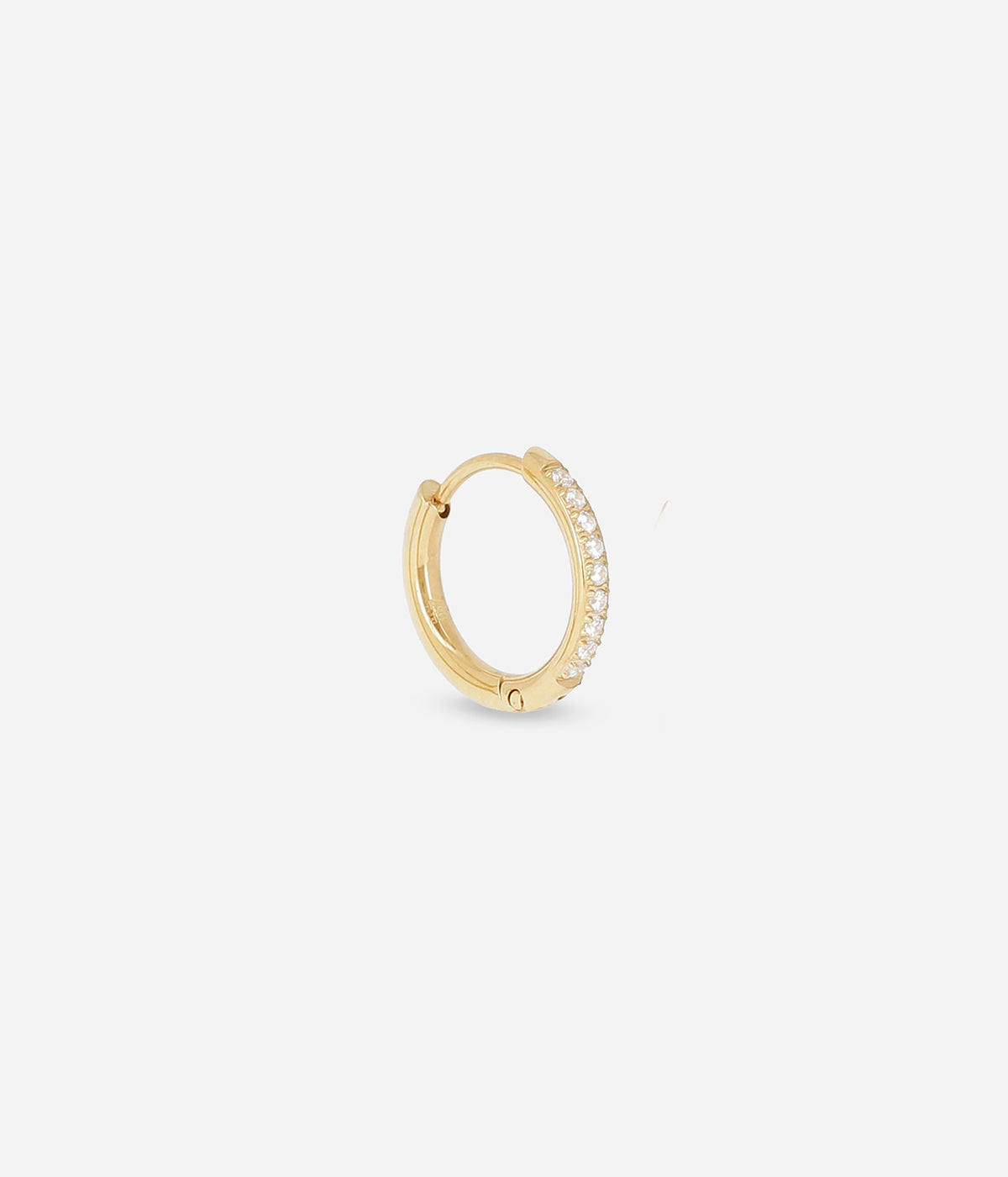 Piercing anneau en acier uni ou doré à l'or fin par ionisation serti de plusieurs zirconiums.