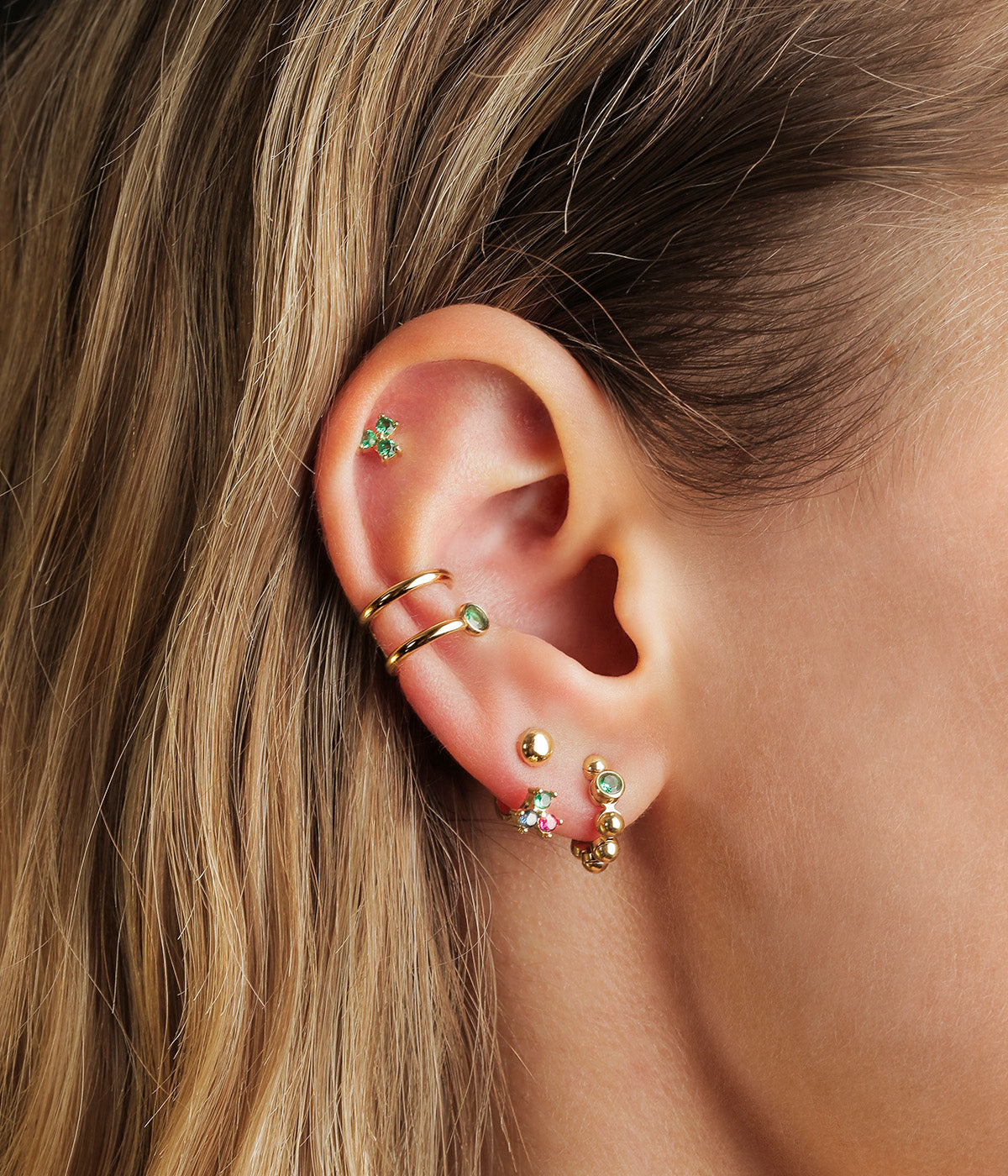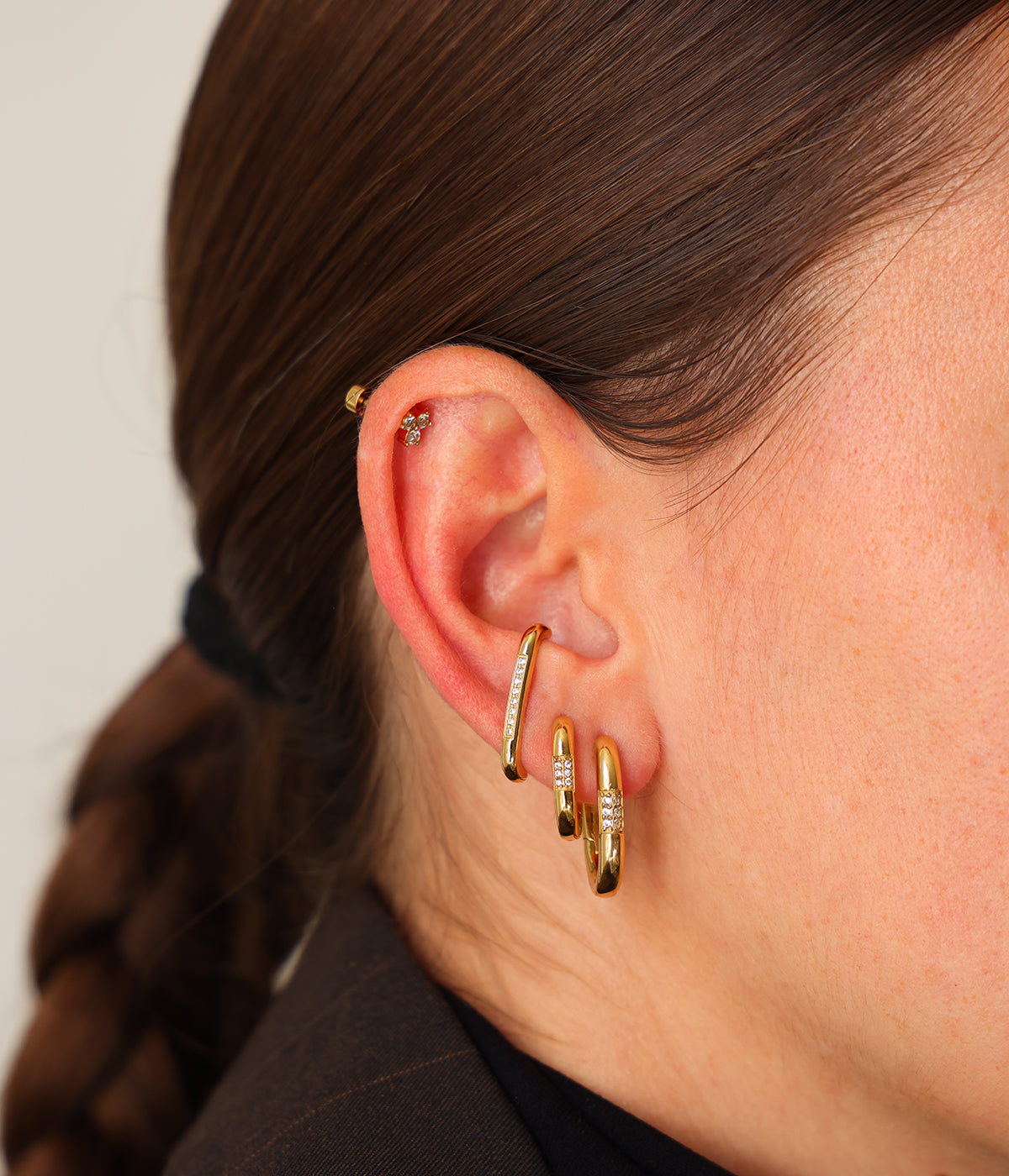 Piercing clou en acier uni ou doré à l'or fin par ionisation. Il est serti de 3 zirconiums.