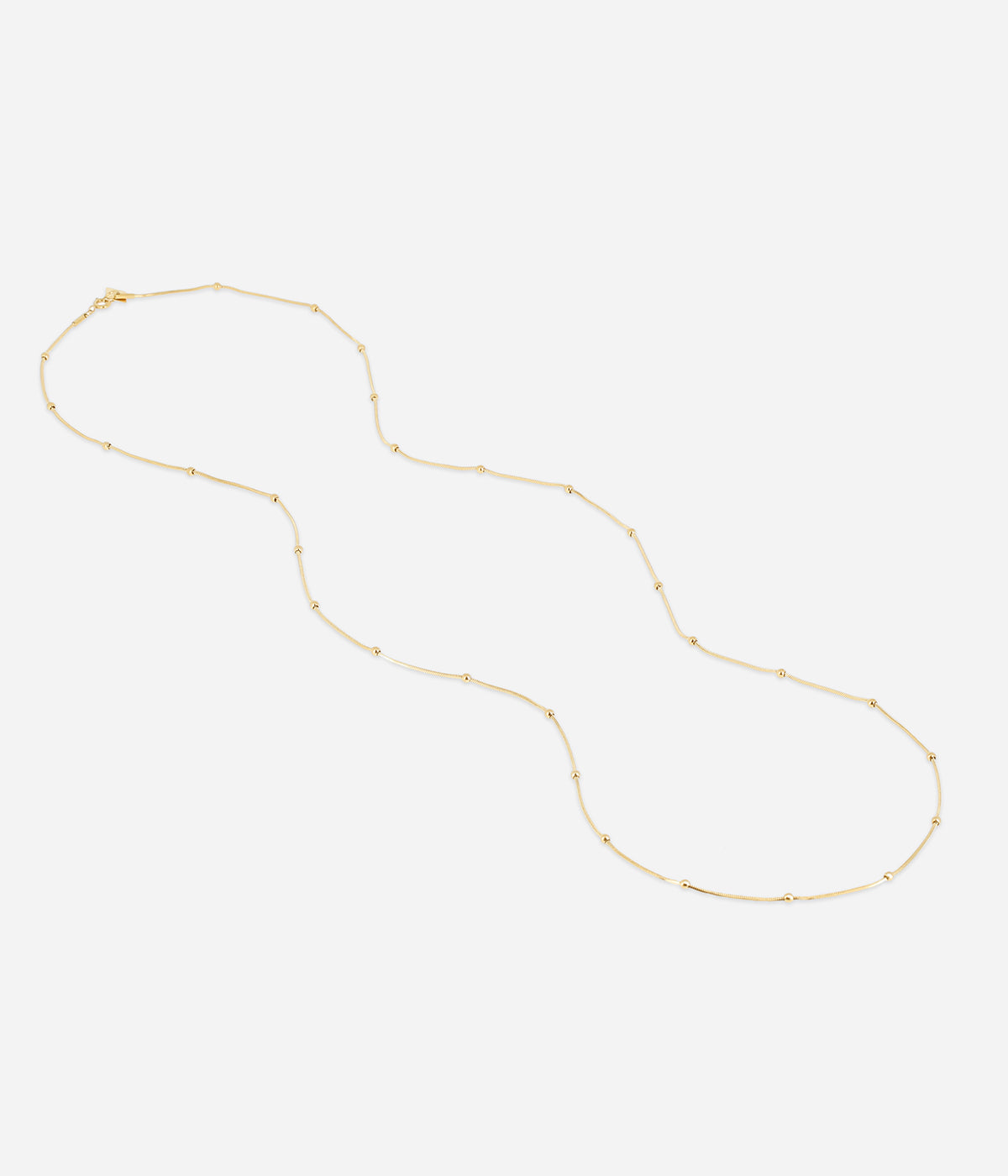 Sautoir en acier uni ou doré à l’or fin serti de petites billes en acier.